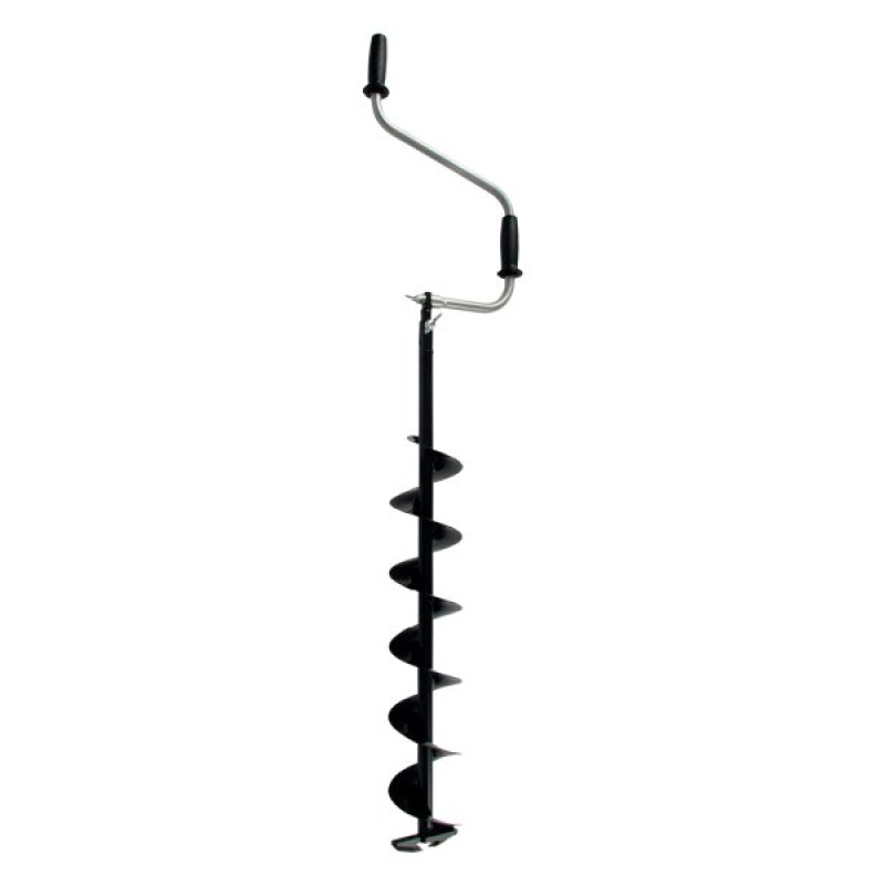 Верхняя рукоятка ледобура смещена относительно оси ледобура на 125 мм, а нижняя на 155 мм. Такое расположение рукояток позволяет вращать ледобур одновременно двумя руками, тем самым увеличивая скорость бурения лунок во льду.